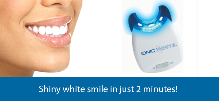 Το Ionic White περιέχει ιόντα αργύρου που ενεργοποιούνται κατά την επαφή με το μπλε LED φως. Τα ιόντα αργύρου βοηθούν τα λευκαντικά συστατικά να ενεργήσουν και να δράσουν γρηγορότερα ώστε έτσι να μπούν βαθύτερα στο δόντι. Με αυτό τον τρόπο τα δόντια σας καθαρίζονται από τα στίγματα από τσάι, καπνό, coca cola, χυμούς και κόκκινο κρασί.